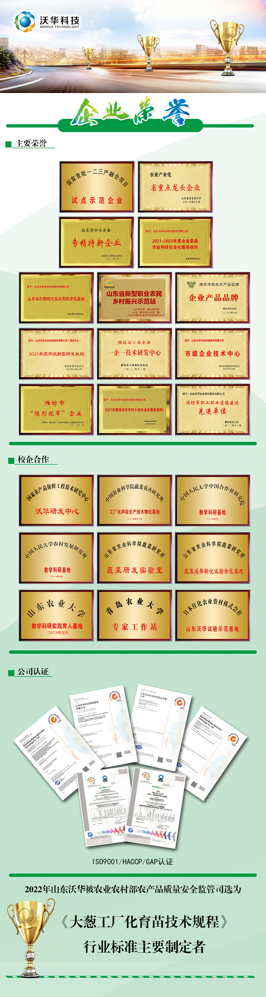 公司逐步成長為國家首批一二三產(chǎn)融合項目試點示范企業(yè)、國家高標(biāo)準(zhǔn)農(nóng)田創(chuàng)新模式試點企業(yè)以及山東省農(nóng)業(yè)產(chǎn)業(yè)化重點龍頭企業(yè)。