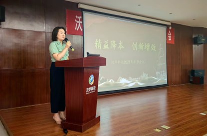 7月25日,沃華科技2023年上半年以“精益降本、創(chuàng)新增效”為主題的年中工作總結(jié)會(huì)議在郚山工廠會(huì)議室隆重召開。公司總經(jīng)理張笑笑、法人張金義、財(cái)務(wù)中心副總權(quán)志亭、社服事業(yè)部副總王壽棚、生鮮事業(yè)部副總張立果、生鮮事業(yè)部廠長(zhǎng)管國(guó)現(xiàn)以及各部門主要負(fù)責(zé)人出席,會(huì)議由企管中心總監(jiān)曹健主持。