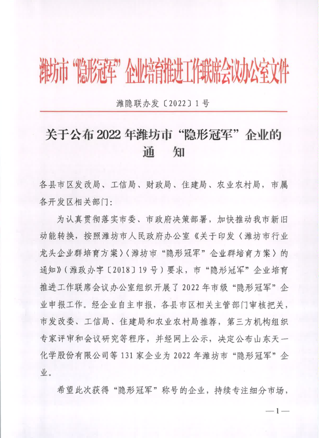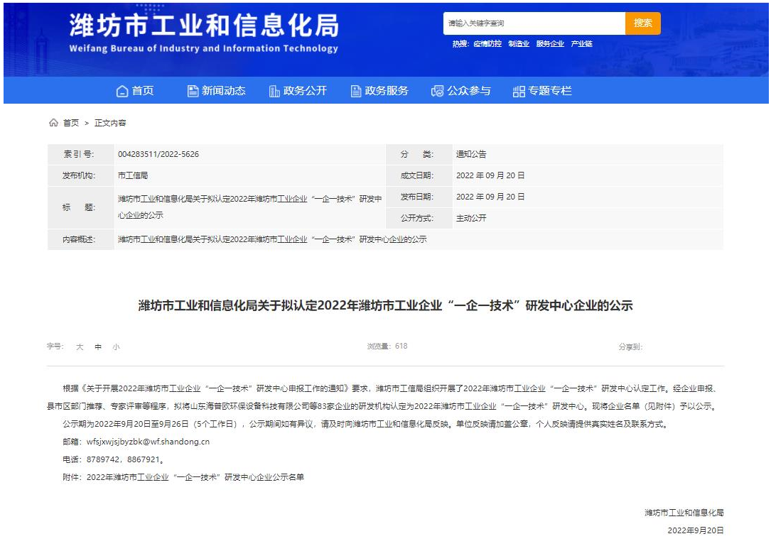 喜讯!山东沃华科技成功入选潍坊市“一企一技术”研发中心!